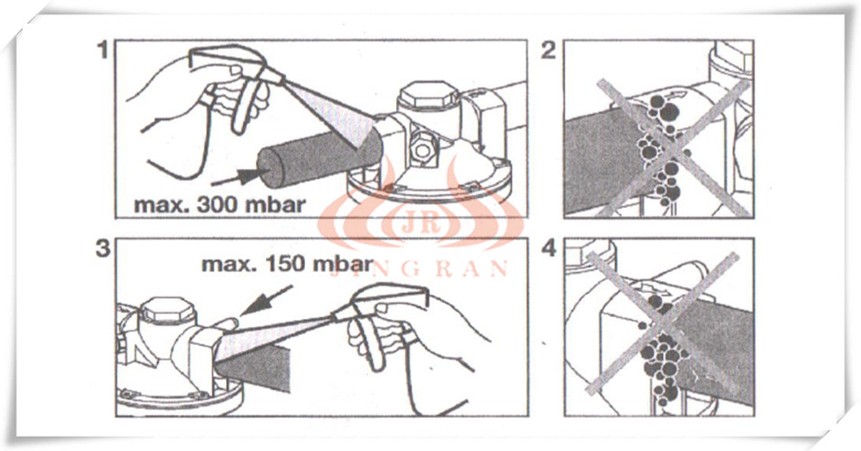 *按照圖示1,2,3,4步驟做相應(yīng)的測試通過燒嘴上的節(jié)流孔或其他調(diào)整元件設(shè)定大火流量